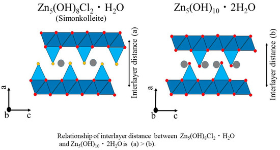 - Hawthorne, F.C.; Sokolova, E. Simonkolleite, Zn5(OH)8Cl2(H2O), A decorated interrupted-sheet Structure of the form [Mφ2]4. Can. Mineral. 2002, 40, 939–946. [Google Scholar] [CrossRef]