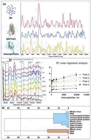 - Zhang, X.; Zhang, X.; Luo, C.; Liu, Z.; Chen, Y.; Dong, S.; Jiang, C.; Yang, S.; Wang, F.; Xiao, X. Volume-Enhanced Raman Scattering Detection of Viruses. Small 2019, 15, 1–8. [Google Scholar] [CrossRef] [PubMed]