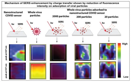 - Shanmukh, S.; Jones, L.; Driskell, J.; Zhao, Y.; Dluhy, R.; Tripp, R.A. Rapid and sensitive detection of respiratory virus molecular signatures using a silver nanorod array SERS substrate. Nano Lett. 2006, 6, 2630–2636. [Google Scholar] [CrossRef]
