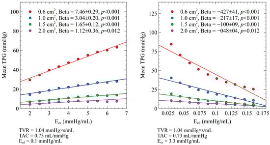 | Eed (mmHg/mL) | −5.6 | 0.5 | <0.001 | −2.8 | 0.2 | <0.001 | −1.3 | 0.1 | <0.001 | −0.6 | 0.1 | <0.001 |