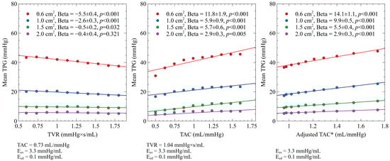 | TVR (mmHg×s/mL) | −0.7 | 0.04 | <0.001 | −0.3 | 0.04 | <0.001 | −0.1 | 0.03 | 0.032 | −0.04 | 0.04 | 0.321 |