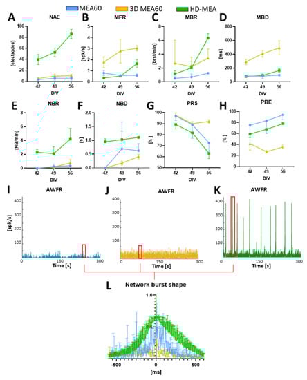 - Cotterill, E.; Hall, D.; Wallace, K.; Mundy, W.R.; Eglen, S.J.; Shafer, T.J. Characterization of early cortical neural network development in multiwell microelectrode array plates. J. Biomol. Screen. 2016, 21, 510–519. [Google Scholar] [CrossRef] [PubMed]
