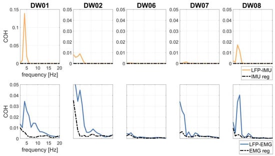 Additionally, we computed (i) LFP–IMU COH without and with IMU regression and (ii) LFP–EMG COH without and with EMG regression.