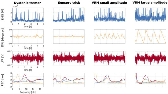 Figure 1 shows an example of the synchronized recordings of EMG, IMU, and LFP in one patient (DW08).