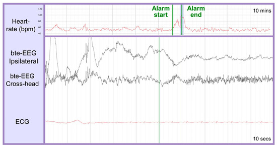 The bte-EEG, raw ECG, and heart rate data were collected and saved in European Data Format (EDF) format, along with the ground-truth seizure annotations. Additionally, all the automated seizure detections’ start and end times were included in the files. In the case of correct detections, the ground-truth annotations were substituted by the automated seizure detections.