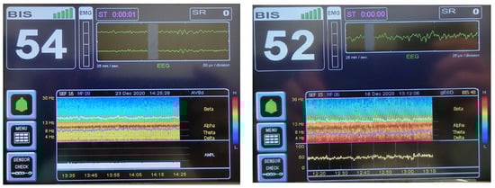 - Nunes, R.R.; Chaves, I.M.; de Alencar, J.C.; Franco, S.B.; de Oliveira, Y.G.; de Menezes, D.G. Bispectral index and other processed parameters of electroencephalogram: An update. Rev. Bras. Anestesiol. 2012, 62, 105–117. [Google Scholar] [CrossRef] [PubMed]