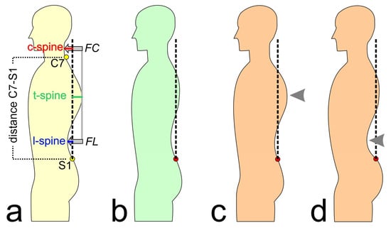 - Ludwig, O.; Dindorf, C.; Kelm, J.; Simon, S.; Nimmrichter, F.; Fröhlich, M. Reference Values for Sagittal Clinical Posture Assessment in People Aged 10 to 69 Years. Int. J. Environ. Res. Public Health 2023, 20, 4131. [Google Scholar] [CrossRef]