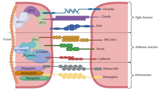 13] and representatives of the claudin family, while the cytoplasmatic plaque is built of proteins with the PDZ domain—ZO-1, ZO-2 and other proteins, e.g., cingulin [