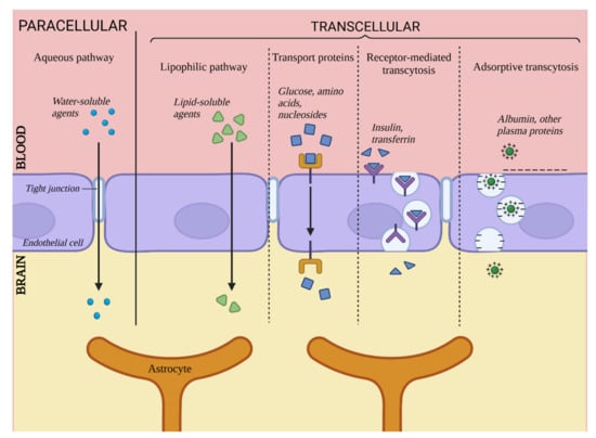 1]. Transport function is based on a few paths of penetration of the BBB by specific compounds, and these paths will be further reviewed later. It is commonly known that both described functions of this structure are impaired in cases of neurodevelopmental and neurodegenerative disorders, such as Alzheimer’s Disease and amyotrophic lateral sclerosis [
