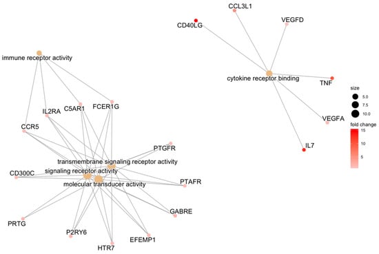 | immune receptor activity | FCER1G/IL10RA/CCR5/C5AR1/IL2RA/IFNAR1/CTSH/CNTFR | 0.034 | |