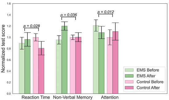 Significant changes in cognitive parameters for the EMS group.