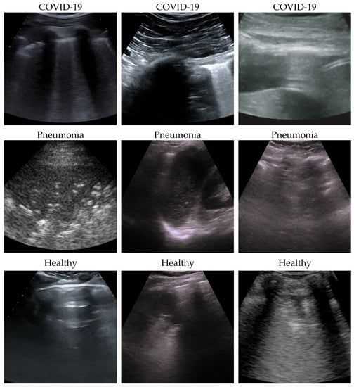 Artificial intelligence (AI), and specifically computer vision (CV), are having remarkable developments in recent years, allowing software programs to obtain meaningful information from digital images. Medicine is an area in which the experimentation and use of this technology is experiencing a strong growth [1,2,3]. Moreover, considering that only in 2020, in the United States of America alone, a production of 600 million medical images was reported [4] and that this number seems to grow steadily, it is increasingly necessary to process these data using robust and trustworthy algorithms, developed in strong collaboration at different levels among medical staff, engineers, and physics. The SARS-CoV-2 pandemic has made a quick and safe as well as economic response even more necessary: the use of point-of-care ultrasound (POCUS) to detect SARS-CoV-2 (viral) pneumonia and the bacterial one is one of the most peculiar emerging case studies which involves the use of sonography examinations in loco instead of at a dedicated facility [5,6]. In general, the preferred methods to assess pulmonary diseases are both X-ray and computed tomography (CT) due to their high image quality and diagnostic power. Nonetheless, ultrasound appears to detect signs of lung diseases as well as, or even better than, CT [7,8,9,10,11]. In some cases, there is a directed map between evidence found by ultrasound and CT [12], too. The needs requested by the SARS-CoV-2 pandemic moved the attention from a precision diagnostic approach to one that aims to maximize a trade-off between accuracy, time, and safety, which are crucial aspects in “a real emergency situation”. Physicians and researchers around the world adapted their points of view towards a common direction where the employment of lung POCUS seemed an optimal solution for both quarantined and hospitalized subjects [8,13,14]. Obviously, CT and magnetic resonance imaging (MRI) are far more precise and reliable examinations, but both have downsides that cannot be ignored. Specifically for CT, a notable downside is the associated ionizing radiation. The equivalent dose for a chest CT is around 7 mSV [15], which is roughly three times the medium annual background radiation exposure.