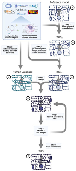 In order to overcome this difficulty, here, we present an algorithm-aided protocol for the automatic construction of highly curated GEMs. The tool is available in a GitHub repository (https://github.com/biosustain/THG, accessed on 25 February 2023) and can be used either to curate and expand existing reference GEMs or to generate metabolic network models from scratch based on the data available in multiple databases in real time.