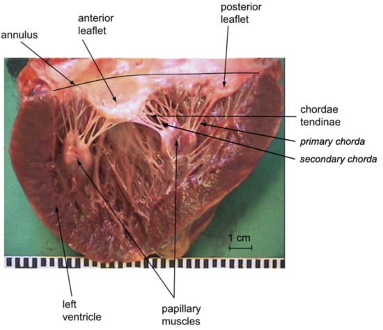 - Sedransk, K.L.; Grande-Allen, K.J.; Vesely, I. Failure mechanics of mitral valve chordae tendineae. J. Heart Valve Dis. 2002, 11, 644–650. [Google Scholar]