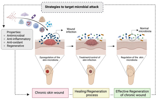 Oliveira CS, Laurano R. Strategies to Target Microbial Attack in Chronic Skin Wounds: From Classic to Innovative Approaches. Bioengineering. 2023; 10(6):666. https://doi.org/10.3390/bioengineering10060666