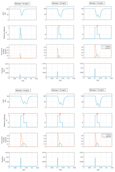 - Sunya, S.; Delvigne, F.; Uribelarrea, J.-L.; Molina-Jouve, C.; Gorret, N. Comparison of the transient responses of Escherichia coli to a glucose pulse of various intensities. Appl. Microbiol. Biotechnol. 2012, 95, 1021–1034. [Google Scholar] [CrossRef] [PubMed]