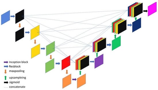 - Ronneberger, O.; Fischer, P.; Brox, T. U-net: Convolutional networks for biomedical image segmentation. In Proceedings of the International Conference on Medical Image Computing and Computer-Assisted Intervention, Munich, Germany, 5–9 October 2015; pp. 234–241. [Google Scholar]