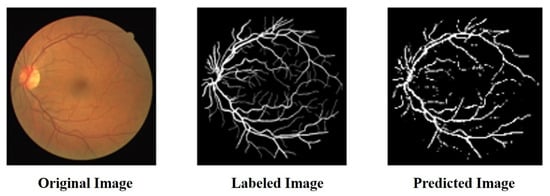 Image segmentation is an important topic in image processing and machine vision. These methods classify all pixels in a given image, and have been widely adopted in a variety of applications such as object detection, scene understanding, autonomous vehicles, and medical images. In recent years, significant advances have been achieved in the use of artificial intelligence (AI) technology for image segmentation. Deep learning models are effective in performing segmentation medical images to better understand their content [], which also supports research on human robot collaboration (HRC) that aims to increase working efficiency and reduce labor costs. The human eye is a critical part of our visual system. For sighted people, vision typically provides more than 70% of the sensory information processed by the brain in everyday life. The fundus of the eye contains multiple anatomical structures, including the retina. Modern imaging techniques can observe the capillary structure of the retina directly in images of the fundus image to study the physiological characteristics of the retina. Performing segmentation on image of retinal blood vessels is the basis of automated analysis methods. The retinal vessels of the fundus are uniquely observable as deep capillaries, and the influence of various diseases on the retinal vessel network can be reflected by segmenting the morphological structure of retinal vessels. However, retinal vessel segmentation involves some notable challenges relating to the contrast between the target blood vessels of the retina and the background, the width of the vessels and their nonuniform variations, and noise generated in the image acquisition process. In the past, oculists directly observed retinal images using the naked eye, which required considerable time and effort. Retinal lesions are complicated and diverse, and the blood vessels in retinal images are interlaced and differ from one another. Fatigue on the part of oculists can also lead to human error [].