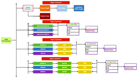 - Three ensemble fusion CNN models—ADaDR-22, ADaR-22, and DaRD-22—are trained and tested with each of the four feature datasets (original, grey, LBP, and feature fusion).