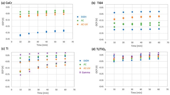 | Sample | Sterilization | OCP (V) | Cox (μF/cm2) |
