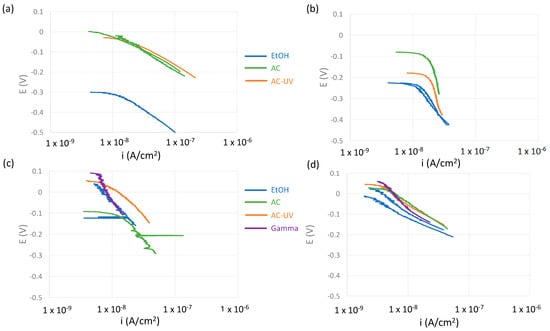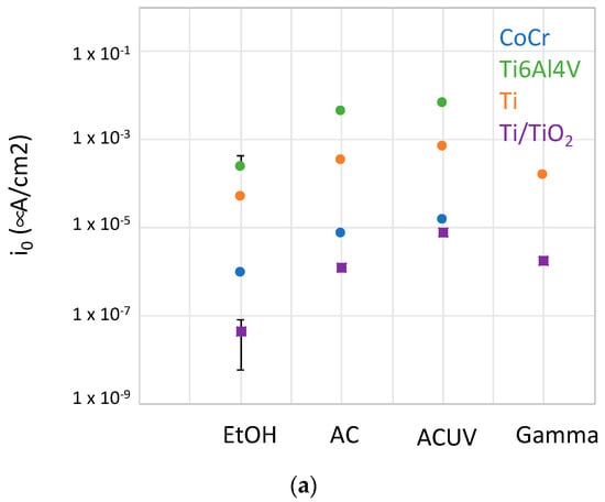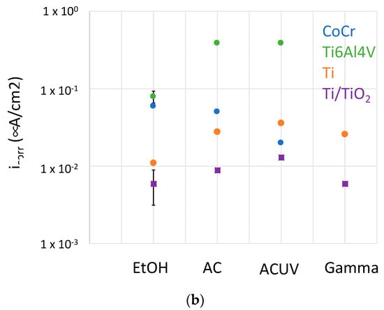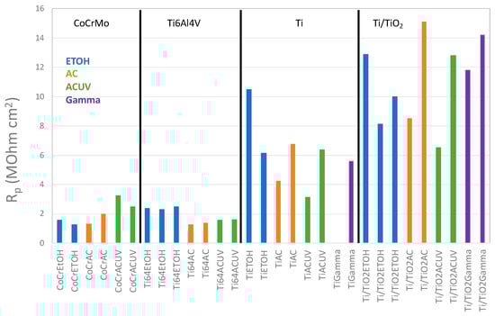 4.3. Effect of Sterilization on the Electrochemical Behavior of Titanium and Titanium Alloy Biomedical Alloy