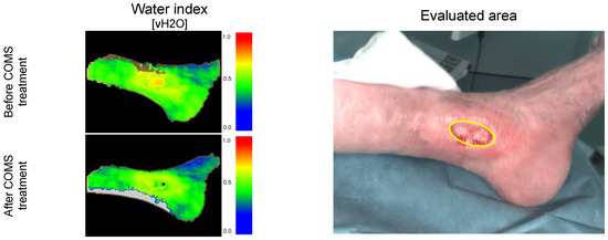 3.6. Short-Term Changes in Water Content before and after COMS Therapy