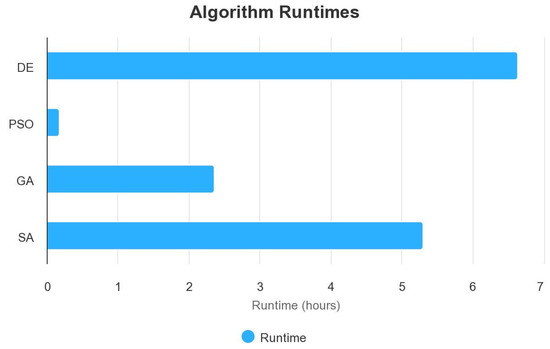 - Generate a new candidate solution by applying the DE mutation operator to , , and . The mutation operator generates a new solution by adding a scaled difference between and to , according to the formula , where F is the scaling factor.