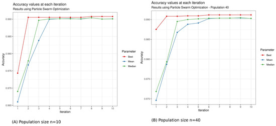 - Evaluate the accuracy of each particle by training an XGBoost model with the corresponding parameter values and computing the accuracy on the training dataset.