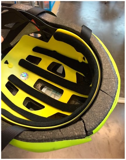 - Harlos, A.R.; Rowson, S. Laboratory Reconstructions of Real-world Bicycle Helmet Impacts. Ann. Biomed. Eng. 2021, 49, 2827–2835. [Google Scholar] [CrossRef]