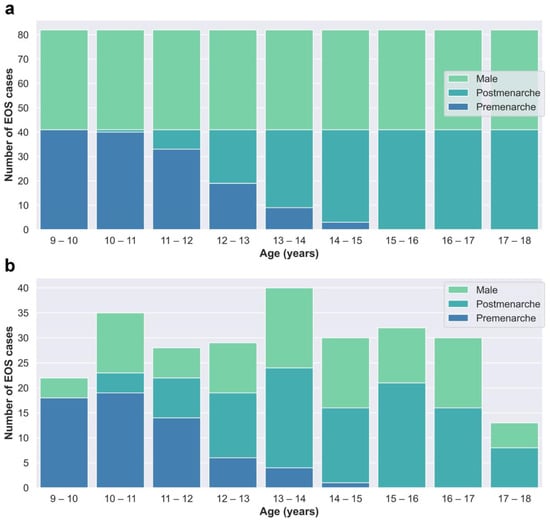 Therefore, the status of menarche in adolescent females is a significant matter of interest for clinicians across various disciplines, including pediatrics, obstetrics, gynecology, orthopedics, endocrinology, and more. Currently, obtaining information on menarche primarily relies on questioning during clinical visits. However, it is noteworthy that adolescent females have the potential to withhold the disclosure of their menarche experiences from others due to feelings of fear, embarrassment, and confusion []. Furthermore, in actual clinical practice, menarche information may be missing as a result of various reasons, including medical negligence, patient forgetfulness, patient refusal to provide information, and loss of recording media. In the absence of menarche information, there is currently a lack of simple and practical alternative evaluation plans.