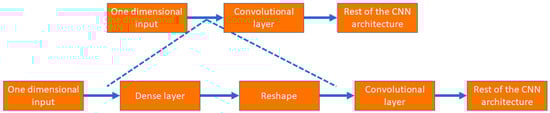 As shown in Figure 6, the input layer involves one-dimensional tabular format data; instead of putting those data into a convolutional layer, those data are initially fed to a dense layer with many nodes. The number of nodes in the dense layer is fixed, so they can be reshaped into multiple channels of one-dimensional data with lengths equal to s, i.e., the number of features. This modification allows the input data to be increased in number (dense layer) and rearranged (reshaped layer). Instead of the standard input data, the convolutional layer received complex patterns in the data in a multichannel format. This helps the convolutional filters to learn the non-linear mapping of complex feature combinations.