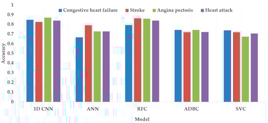 - Kumar, R.P.R.; Polepaka, S. Performance Comparison of Random Forest Classifier and Convolution Neural Network in Predicting Heart Diseases. In Proceedings of the Third International Conference on Computational Intelligence and Informatics, Hyderabad, India, 28–29 December 2018; Springer: Berlin/Heidelberg, Germany, 2020; pp. 683–691. [Google Scholar] [CrossRef]