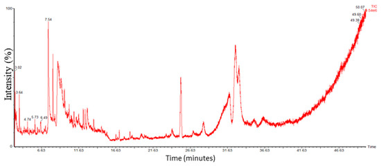 The extract was analyzed via Atomic Absorption Spectrometer AAnalyst (PerkinElmer, Waltham, MA, USA) for different elements examination. 500 mg of O-Ext was added to a conc. HNO3 and HCL mixture (3:1). The mixture was heated up to 85 °C and 1 mL of HCLO4 added. Then, distilled H2O was mixed to attain a final volume of 50 mL, which was injected into the sample for analysis [14,18].