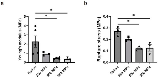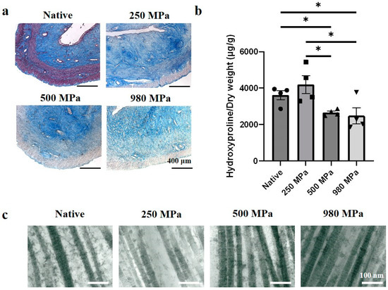 - Diehl, P.; Steinhauser, E.; Gollwitzer, H.; Heister, C.; Schauwecker, J.; Milz, S.; Mittelmeier, W.S. Biomechanical and Immunohistochemical Analysis of High Hydrostatic Pressure-Treated Achilles Tendons. J. Orthop. Sci. 2006, 11, 380–385. [Google Scholar] [CrossRef]