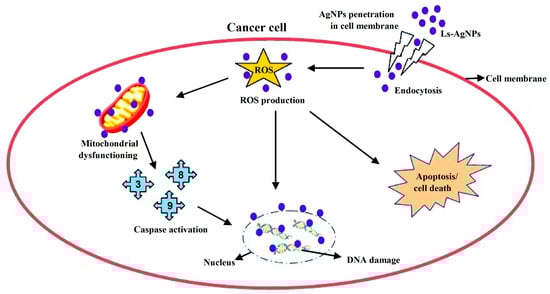 Schematic representation of possible model mechanism and mode of action of silver nanoparticles in cancer cells.