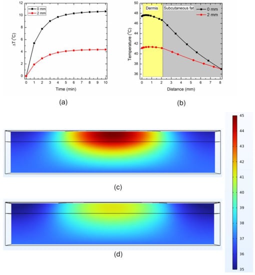 3.3. Effect of Distance between the LED and Skin Surface on Heat Transport