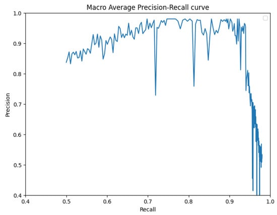 To further substantiate our comparison, we visualized the results from our proposed model. Figure 3 displays the instance segmentation results of various networks compared to the ground truth. Our method demonstrates closer alignment with the ground truth, indicating better performance in teeth instance segmentation tasks compared to the other methods. Notably, our proposed network maintains a consistent performance across all teeth, unlike the other networks. The synergistic benefits of the two tasks, SS and affinity pyramid, primarily drive the improvement in instance segmentation performance. Figure 4 depicts the results of panoptic segmentation with the background class (semantic segmentation) and tooth classes (instance segmentation). Figure 5 presents the precision–recall curve, which is the average of precision and recall for all classes. Panoptic segmentation improves the Dice score by also considering the surrounding tissues of teeth; thus, the loss also takes into account the background segmentation to yield better results.