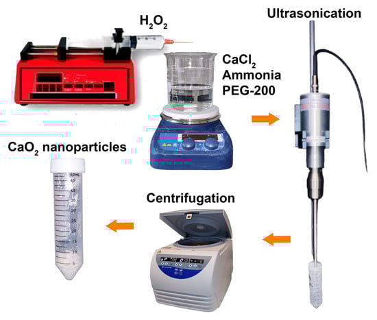 - Rastinfard, A.; Haghbin Nazarpak, M.; Moztarzadeh, F. Controlled Chemical Synthesis of CaO2 Particles Coated with Polyethylene Glycol: Characterization of Crystallite Size and Oxygen Release Kinetics. RSC Adv. 2017, 8, 91–101. [Google Scholar] [CrossRef]