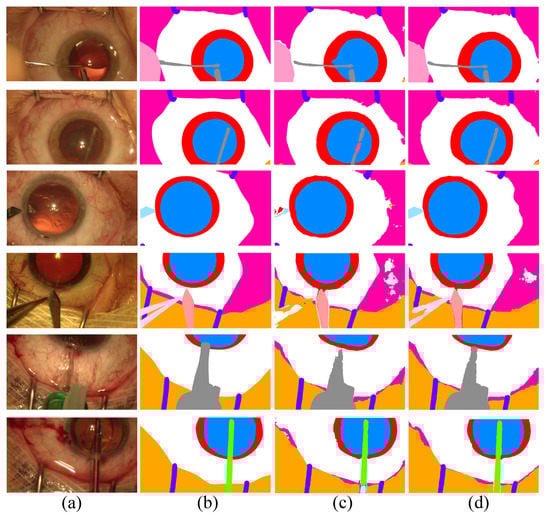 - Pissas, T.; Ravasio, C.S.; Cruz, L.D.; Bergeles, C. Effective semantic segmentation in Cataract Surgery: What matters most? In Proceedings of the International Conference on Medical Image Computing and Computer-Assisted Intervention, Strasbourg, France, 27 September–1 October 2021; Springer: Berlin/Heidelberg, Germany, 2021; pp. 509–518. [Google Scholar]