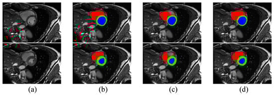 Currently, there are various new technologies and devices that assist in clinical diagnostic work [,,], among which medical image segmentation plays an important role in clinical auxiliary diagnosis []. Recently, researchers have made great efforts in medical image segmentation [,,] and achieved excellent performance with a large amount of labeled data. However, the annotation of medical data are typically dependent on medical professionals, and annotating large datasets is time-consuming.