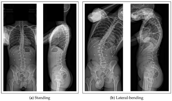 - Kim, H.; Kim, H.S.; Moon, E.S.; Yoon, C.S.; Chung, T.S.; Song, H.T.; Suh, J.S.; Lee, Y.H.; Kim, S. Scoliosis imaging: What Radiologists should know. Radiographics 2010, 30, 1823–1842. [Google Scholar] [CrossRef] [PubMed]
