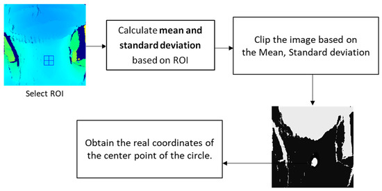 To enhance the images to emphasize a specific part, the image data were normalized on a section basis rather than treating each pixel in the entire image equally. The regions of interest (ROIs) were selected to compute the mean and standard deviation, and the lower and upper ranges were applied by clipping the characteristic feature in the images. After normalization, the circular area of the laryngeal motion could be observed, and the real coordinates of its center point could be obtained. After that, the highest and lowest points were coordinated, and the distance between the two points was calculated. Figure 2 demonstrates the processing flowchart of the optimization process.