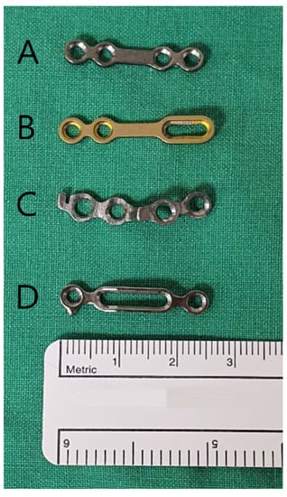 - Lee, H.; Agpoon, K.; Besana, A.; Lim, H.; Jang, H.; Lee, E. Mandibular stability using sliding or conventional four-hole plates for fixation after bilateral sagittal split ramus osteotomy for mandibular setback. Br. J. Oral Maxillofac. Surg. 2017, 55, 378–382. [Google Scholar] [CrossRef]