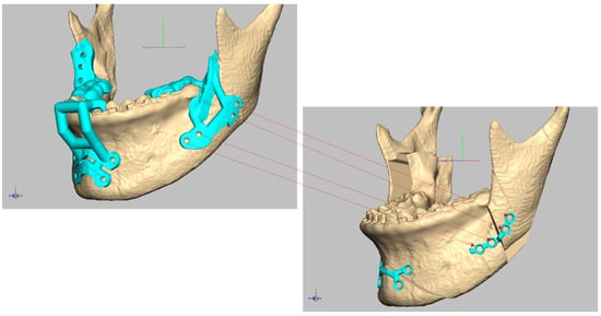- Veyssiere, A.; Leprovost, N.; Ambroise, B.; Prévost, R.; Chatellier, A.; Bénateau, H. Study of the mechanical reliability of an S-shaped adjustable osteosynthesis plate for bilateral sagittal split osteotomies. Study on 15 consecutive cases. J. Stomatol. Oral Maxillofac. Surg. 2018, 119, 19–24. [Google Scholar] [CrossRef] [PubMed]
