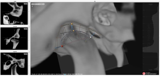 - Lee, C.-H.; Cho, S.-W.; Kim, J.-W.; Ahn, H.-J.; Kim, Y.-H.; Yang, B.-E. Three-dimensional assessment of condylar position following orthognathic surgery using the centric relation bite and the ramal reference line: A retrospective clinical study. Medicine 2019, 98, e14931. [Google Scholar] [CrossRef]