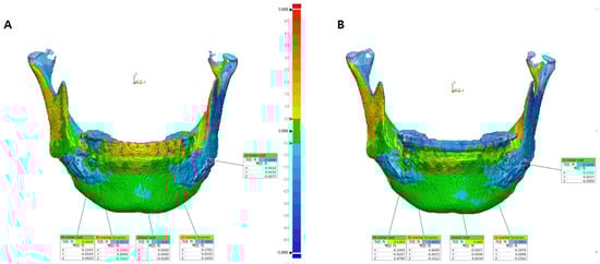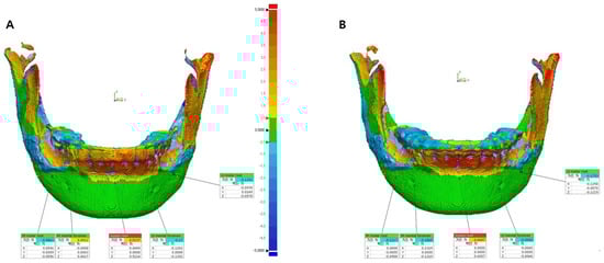 3.3. Post-Superimposition Analysis Results of the Mandible