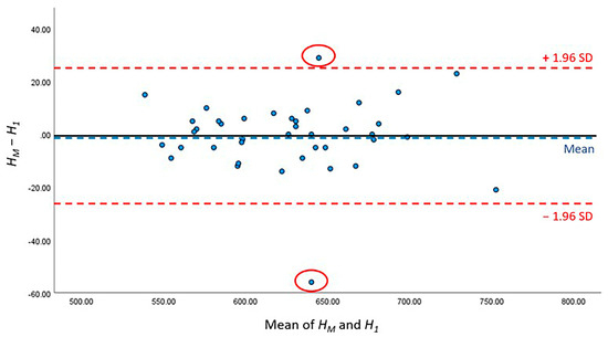 Bland–Altman figure of CSAmin height level between HM and H2.