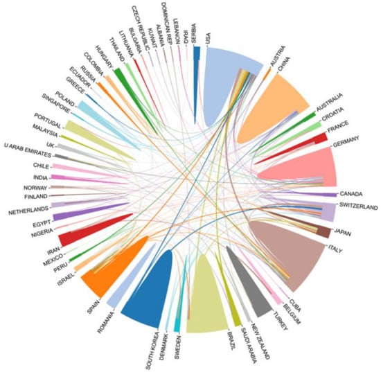 The knowledge map produced by CiteSpace provides research information conducted over a specific time range, with node or edge colors referencing the color bar indicating the year. Node size represents the frequency of occurrence, with larger nodes indicating higher frequency. The circular layers of the node represent the annual rings, with a purple circular layer marking the centrality (when the number of centralities is larger than 0.1) and its width indicating the magnitude of the centrality, reflecting the structural and influential aspects of countries, institutions, authors, keywords, and references.