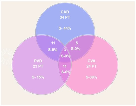 Venn diagram illustrating the comorbidities and survival (S) among the patient sample.