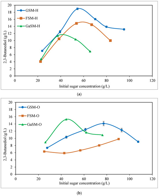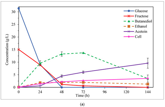 - Białkowska, A.M.; Jędrzejczak-Krzepkowska, M.; Gromek, E.; Krysiak, J.; Sikora, B.; Kalinowska, H.; Kubik, C.; Schütt, F.; Turkiewicz, M. Effects of genetic modifications and fermentation conditions on 2,3-butanediol production by alkaliphilic Bacillus subtilis. Appl. Microbiol. Biotechnol. 2016, 100, 2663–2676. [Google Scholar] [CrossRef]